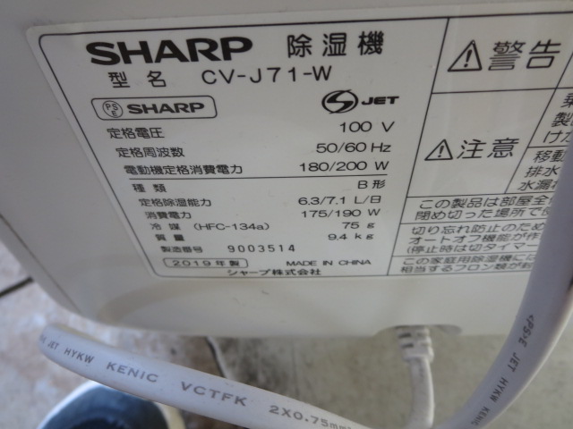シャープ除湿器2019年製 |